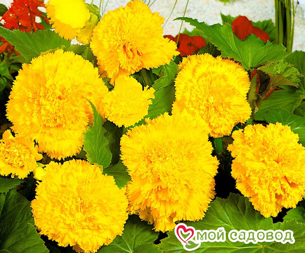 Бегония бахромчатая желтая – клубневое растение высотой 20-30см. Красивы ее зеленые сердцеобразные листья с неровно зубчатыми краями, прекрасны и махровые ярко желтые цветки, похожие на гвоздику, диаметром 8-10см. Бегония хороша для озеленения помещений, лоджий, балконов и для клумб, цветников и рабаток. В районах с мягким климатом разводят в открытом грунте, в более холодных районах высаживают на балконах или в саду только на летний период. Бегония любит рыхлый питательный грунт со слабокислой реакцией. Оптимальная схема посадки 20х30 см.Сделайте дренаж. Поливайте регулярно и умеренно. Раз в месяц подкармливайте минеральным удобрением. В период покоя обеспечьте прохладную зимовку. Чтобы растения зацвели к началу лета, посев на рассаду делают в январе-марте. Заделка не требуется. Просто равномерно распределите по рыхлому торфяному субстрату.