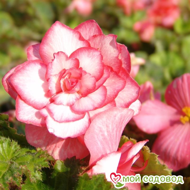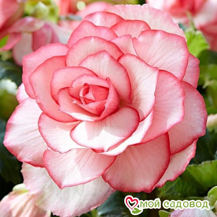 Бегония Бутон де Роуз  — гибридная бегония с великолепными розовидными цветами, кустовая, клубневая. Компактный куст до 25 см высотой, со светло-зелеными листьями. Цветки крупные, махровые, белоснежные с ярко-малиновой каймой, 15-18 см диаметром. Бегония любит рыхлый питательный грунт со слабокислой реакцией. Оптимальная схема посадки 20х30 см.Сделайте дренаж. Поливайте регулярно и умеренно. Раз в месяц подкармливайте минеральным удобрением. В период покоя обеспечьте прохладную зимовку. Чтобы растения зацвели к началу лета, посев на рассаду делают в январе-марте. Заделка не требуется. Просто равномерно распределите по рыхлому торфяному субстрату.