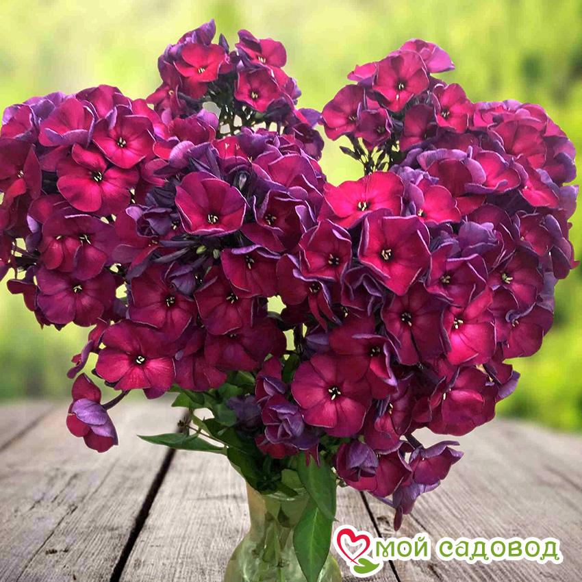 Многолетнее метельчатое растение представляет собой прочный, среднерослый куст. Его диаметр составляет от 50 до 60 см. В вышину прямостоячие побеги могут достичь от 70 до 80 см. Компактный кустик покрыт густой листвой. Кончики узких тёмно-зелёных листьев, наделённых гладкими краями, заострены. Соцветие средней плотности чаще всего бывает 20 см. Его характерной особенностью является округло-коническая форма. Крупноцветковая культура выделяется среди прочих сортов своей яркостью и колоритностью. Диаметр колесовидного цветка может составлять от 4 до 4,2 см. Немахровые лепестки густо-вишнёвого цвета с лиловым оттенком слегка загнуты. Цветы приятно пахнут. Как выглядит растение? Куст прямостоячий, густо облиственный, высотой до 80 см. Растение способно стремительно разрастаться. Побеги прочные, но под весом раскрывающихся соцветий слегка поникают. Цветение начинается в конце июля — первой половине августа. Окраска бутонов необычная – пурпурно-коричневая. Распустившиеся цветки белоснежные, а трубка розового цвета. Вместе они образуют крупное соцветие пирамидальной формы. Диаметр цветка составляет 4,2 см. Аромат нежный и приятный. Применение в ландшафтном дизайне Сорт выращивают на втором плане клумб и миксбордеров. Многолетник хорошо сочетается с лилиями, лилейниками и древовидными пионами с темной окраской лепестков. Флористы добавляют цветок в букетные композиции. Советы по посадке и выращиванию Для растения подходит как солнечно, так и слега затененное место. Жизнь хрупких цветков можно продлить, если обеспечить им защиту от резких порывов ветра. Декоративные качества многолетника раскрываются лучшим образом в плодородной, рыхлой и умеренно влажной земле. При посадке важно, чтобы почки находились на 2 см ниже уровня поверхности грунта. Лунки готовят размером 30 х 30 см. Внутрь насыпают компост, торф и песок. В слишком легкую почву добавляют глину – она поможет удерживать влагу. Корни саженца расправляют и засыпают почвосмесью. Купить недорого флоксы можно в интернет-магазине «Мой садовод». Просто отправьте понравившийся сорт в корзину, нажав на соответствующую кнопку. Мы бережно упакуем и максимально быстро доставим Вашу покупку ТК СДЭК или почтой России. Если возникнут вопросы или сложности с оформлением заказа, наши консультанты предоставят квалифицированную помощь. Мы гарантируем высокое качество посадочного материала и дорожим мнением каждого покупателя!