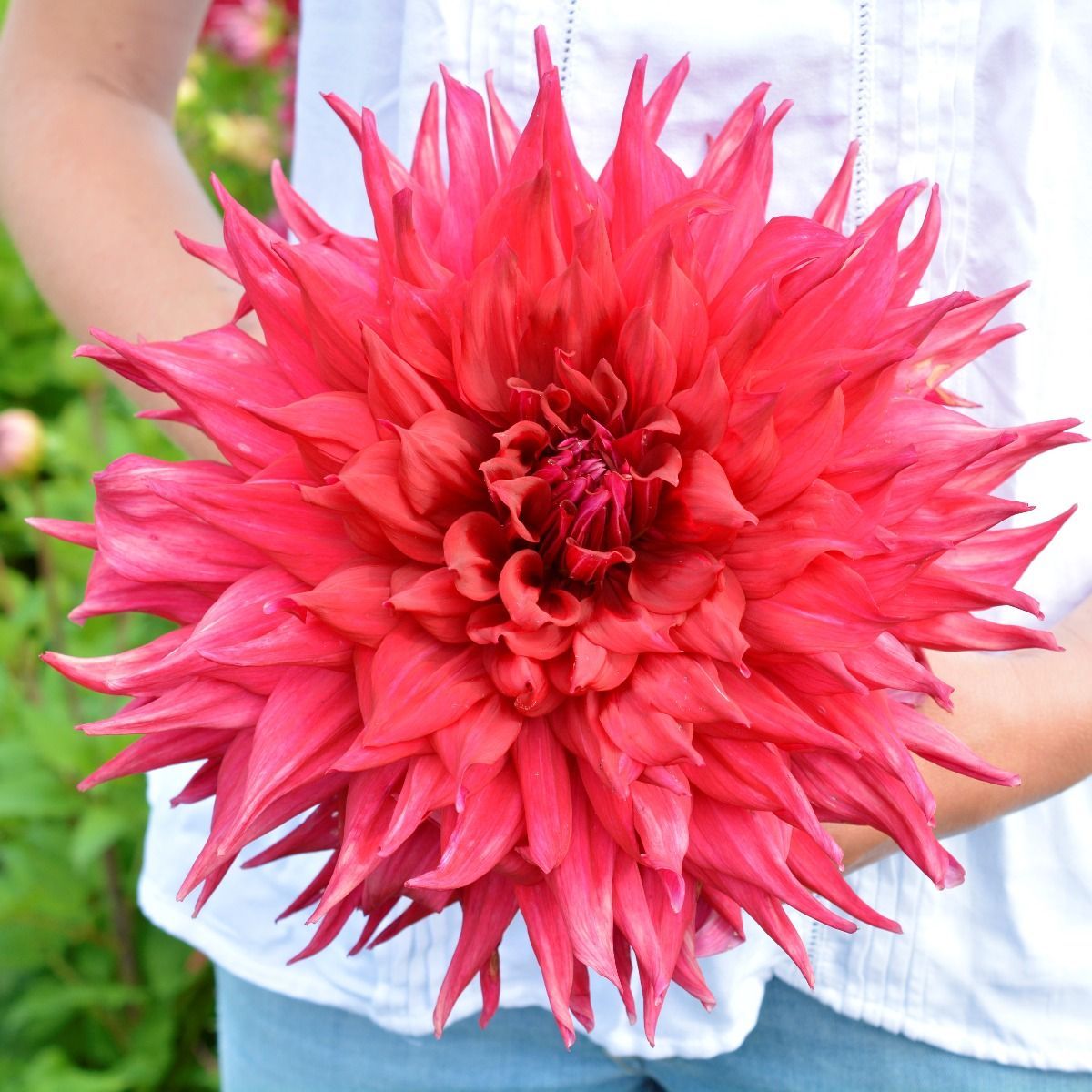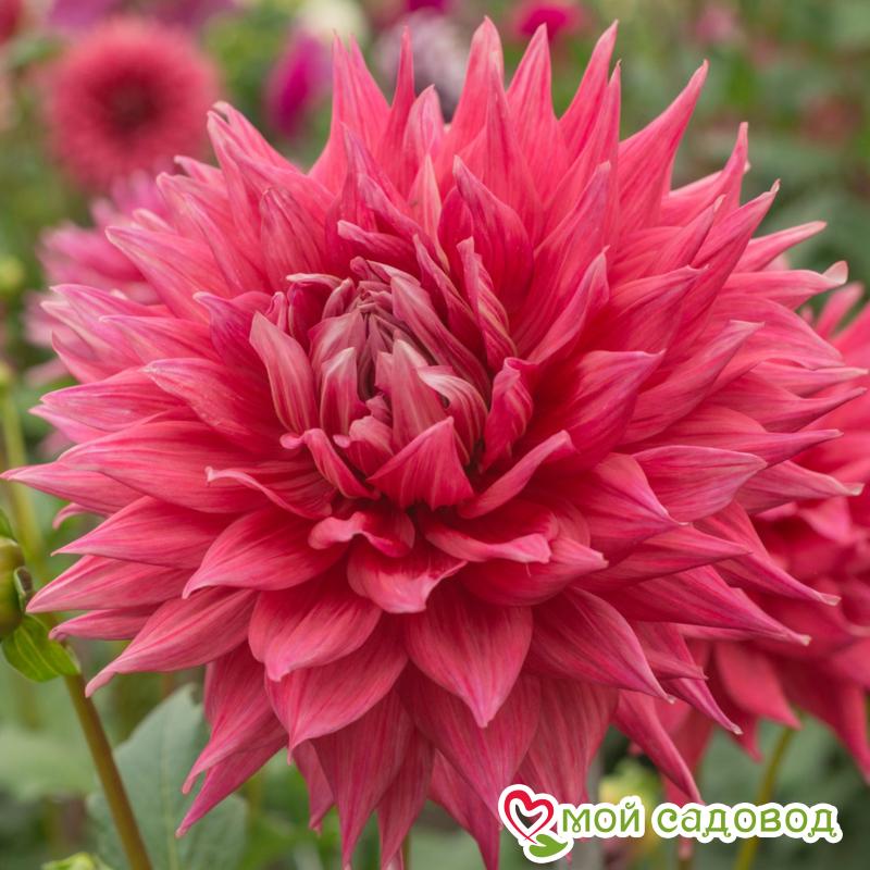 Это яркий представитель семейства Макси. Многолетник необычайно красив, поэтому достойно украсит любой участок. К тому же, он неприхотлив и вынослив. Купить недорого качественный посадочный материал можно в нашем интернет-магазине. Как выглядит растение? Куст густой, с яркими зелеными листьями. Цветки махровые, диаметром до 25 см. Лепестки плоские и широкие, иногда волнистые. Окрашены они в ярко-красный цвет. К краю соцветия лепестки слегка загибаются. Высота взрослого экземпляра составляет 150 см. Период цветения приходится на июль-октябрь. Применение в ландшафтном дизайне Георгина Крев Кер позволяет создавать потрясающие цветочные композиции и акцентировать определенные участки в саду. Ее используют для создания цветников, клумб, бордюров и рабаток. Хорошими компаньонами станут розы, лилии или пионы. Советы по посадке и выращиванию Для успешного выращивания георгин следует учесть несколько важных моментов. Во-первых, выберите хорошо освещенное место. Во-вторых, подготовьте почву, обогатив ее органическим удобрением и обеспечив хорошую дренажную систему. Важно также следить за поливом, чтобы почва всегда была влажной, но не переувлажненной. При посадке саженцев убедитесь, что корни расположены на глубине 10 – 15 см. Регулярно удаляйте увядшие цветы. Организуйте поддержку стеблям, если они вырастут достаточно высокими. Положительные качества георгины Крев Кер Данный сорт обладает множеством ценных качеств, которые делают его привлекательным выбором для садоводов. Во-первых, это многолетнее растение. Правильно ухаживая за ним, Вы сможете радоваться пышному цветению в течение долгих лет.  Во-вторых сорт устойчив к заболеваниям и вредителям, что упрощает выращивание и уход. Также цветок отличается высокой стойкостью к неблагоприятным погодным условиям (сильным дождям или засухам). Купить недорого саженцы георгин можно в интернет-магазине «Мой садовод». Просто отправьте понравившийся сорт в корзину, нажав на соответствующую кнопку. Мы бережно упакуем и максимально быстро доставим Вашу покупку ТК СДЭК или почтой России. Если возникнут вопросы или сложности с оформлением заказа, наши консультанты предоставят квалифицированную помощь. Мы гарантируем высокое качество посадочного материала и дорожим мнением каждого покупателя!
