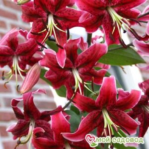 Сорт относится к махровым крупноцветковым. Луковицы довольно крупные. Они отлично приживаются в любых условиях. Цветочные стрелки длинные и прочные, прямостоячие. На макушках образуются пышные соцветия. Лепестки цветков окрашены в красно-малиновый. Цветки махровые, собранные в пышные соцветия, крупные, красно-малинового цвета. Аромат тонкий и ненавязчивый.