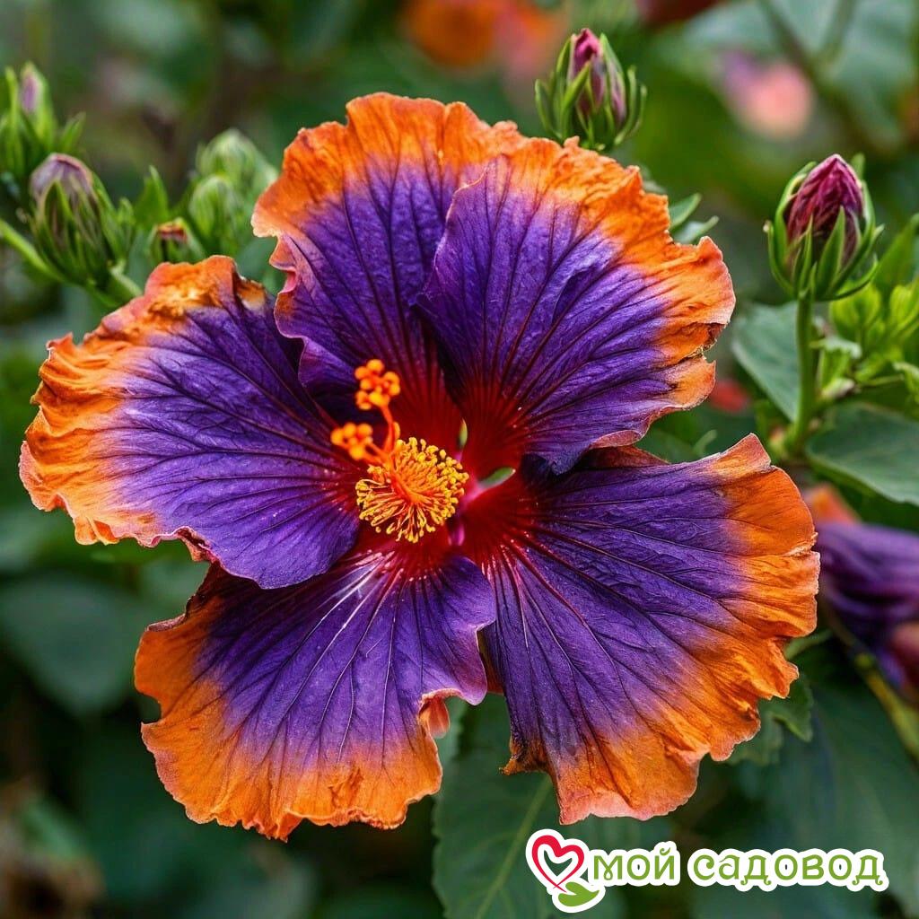 Читать далееГибискус «Оранж Спелл» — это воплощение красоты и загадки. Представьте: крупные фиолетовые цветки, словно бархатные лепестки, опалённые огнём, с яркими оранжевыми краями, словно языки пламени. Этот гибискус создан для тех, кто ценит оригинальность и хочет добавить в свой сад нотку волшебства. Его красота приковывает взгляд и дарит ощущение прикосновения к чему-то необыкновенному.