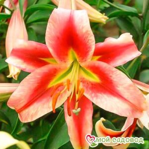 Гладиолус Чарминг Бьюти (Charming Beauty) — декоративное луковичное растение, представитель семейства Ирисовые. Стебли прямые, одиночные, с тонкой линейной листвой. Достигают высоты в до150 см. Цветы собраны в несколько видов соцветий: одностороннее, двустороннее, спиральное колосовидное. Соцветие длиной до 80 см. Сами цветы сидячие, с воронкообразным околоцветником, состоящим из шести неравных долей. Посадка. Из-за погодно-климатических особенностей в разных регионах России сроки посадки отличаются: На Юге (Краснодарский край (Кубань), Северный Кавказ) — сажать можно уже в конце апреля. В Средней полосе (в т. ч. Подмосковье) — оптимальное время приходится на начало или середину мая. В Сибири, на Урале, в Ленинградской области — в середине или конце мая. Места посадки должны быть солнечными, без сквозняков и с качественно дренированной почвой. Затенённые участки плохо сказываются на развитии культуры. Однако в южных районах небольшое затенение допускается. Глубина высадки луковиц обычно составляет 8-10 см (для мелких), 10-15 см (для крупных). Полив. Средняя частота поливов культуры составляет раз в неделю, а летом, в жаркие дни, один раз в 3-4 суток. Поливают утром или вечером, используя около 10-12 л воды на 1 м2. Полив производят в специально подготовленные междурядные борозды, углублённые до 30-50 мм с тем, чтобы капли воды не попадали на листики гладиолусов. Без регулярного полива цветы быстро завянут. По завершении процедуры кусты окучивают. Раз в декаду обязательно производят рыхление почвы.