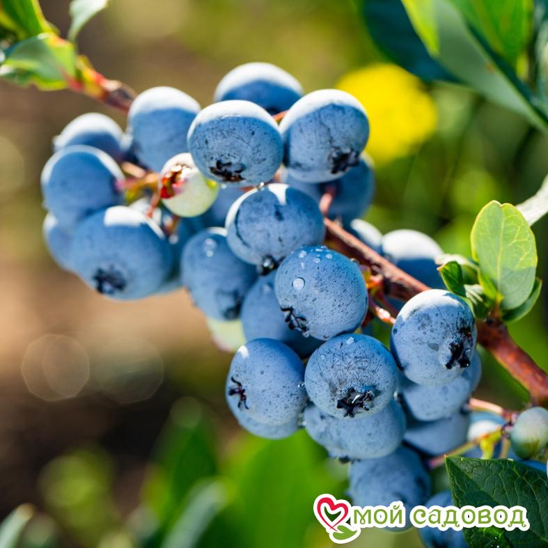 ☀️ Высаживать саженцы голубики с закрытой корневой системой можно на протяжении всего вегетационного периода (весна-лето-осень). Посадку голубики весной в открытый грунт следует проводить после исчезновения угрозы возвратных заморозков, когда воздух прогреется до 10-15⁰С, но до распускания почек (в апреле-мае). Таким образом, саженец будет иметь достаточно времени, чтобы укорениться и адаптироваться к новым условиям. Осенью к посадочным работам приступают в конце сентября-начале октября.. после того, как растение закончит вегетацию и останется без листьев. При этом оно будет иметь в своем распоряжении 3-4 недели до устойчивых морозов для укоренения. Голубика Блюголд — ягоды голубики этого популярного сорта светло-синие, с плотной ароматной мякотью. Да и сами кустики пышные и красивые, поэтому станут прекрасным украшением любого сада. Однако стоит учесть, что раскидистость – это одновременно и недостаток кустов этого сорта, ведь они требуют сильной обрезки. Блюголд – ранний сорт. Плоды приобретают насыщенный цвет еще в начале лета и дружно созревают к середине июля. С одного куста собирают от 4,5 кг ягод даже в не самые урожайные годы. Эта голубика стойко выдерживает морозы до –35°С, поэтому подходит для выращивания в северных регионах. Слабая сторона сорта – его ягоды быстро завяливаются, мумифицируются, особенно если лето стоит жаркое. ПОСАДКА Перед посадкой полейте растение в контейнере и дайте ему постоять, чтобы можно было легко вынуть саженец из контейнера не повредив корневую систему. Подготовьте посадочную яму глубиной и шириной примерно 0,5 м. Добавьте в неё кислую песчано-земляную смесь (лучше если это будет специализированный грунт с повышенной кислотностью рН) и перемешайте с почвой, вынутой из ямки. Можно улучшить структуру почвы, добавив кислого торфа. Посадите растение так, чтобы оно оказалось на несколько сантиметров ниже, чем оно сидело в горшке. Слегка уплотните землю вокруг саженца и еще раз полейте как следует. Для предотвращения испарения влаги покройте почву слоем мульчи (опилки, кора) толщиной 5-8 см. Это позволит решить и ещё ряд проблем. Во-первых, слой мульчи позволит избавиться от сорняков, во-вторых, отрегулирует водно-воздушный и температурный режим верхнего слоя почвы (т.е. почва не пересыхает и не перегревается), в третьих, он улучшит освещённость куста, в четвёртых, поможет бороться с болезнями.