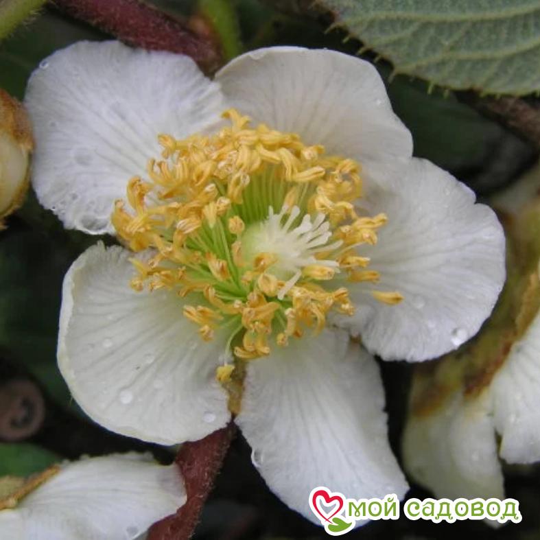 Актинидия деликатесная — невысокая, до 9 м., лиана либо вьющийся кустарник. Для роста и полноценного развития необходима опора. Плоды этого растения, киви, хорошо известны каждому современному человеку. Они значительно крупнее, чем у других видов, до 6–7 см. в диаметре, округлые или вытянутые, зеленые или коричневые. Мякоть зеленоватая, беловатая или бурая, со множеством темно-фиолетовых или черных семян. Ствол серовато-коричневый, ветвящийся. Листья очередные, яйцевидные, на длинных красноватых черешках. Основание листовой пластинки обозначено заметной выемкой, наружная поверхность гладкая, насыщенного зеленого цвета. Нижняя сторона листа бледная, с хорошо выраженными жилками. Молодая листва отличается красноватым опушением. Цветение начинается в июне и может продолжаться до 20 дней.  Растение переносит полутень, прекрасно развивается на солнце. Сорт самоопыляемый, актиниция не требует принудительного опыта и дополнительной подсадки растений противоположного пола. Плоды очень полезные и вкусные, с приятным кисловатым вкусом.