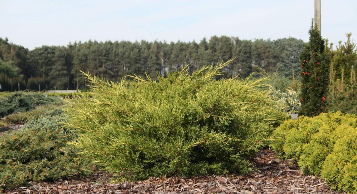 Можжевельник китайский Куривао Голд Это популярная садовая культура, принадлежащая к семейству Кипарисовые. Распространена она с южной Маньчжурии и Китае. В Западную Европу завезена в 1804 году. С тех пор растение активно используют в ландшафтном дизайне. Ботаническое описание Можжевельник китайский Куривао Голд относится к крупным, высоким и раскидистым хвойникам. Вечнозелёное растение хорошо поддаётся обрезке и формировке в бансай. Максимальная ширина кроны равна 2 м, а высота – около 2,5 м. Интенсивность роста не слишком большая. В среднем годовой прирост варьирует в пределах 25 см. Хвоя чешуйчатая по структуре. У молоденьких саженцев она золотисто-зелёной окраски, а у взрослых приобретает насыщенный зелёный тон. В средине кроны хвоя сизая. Применение Можжевельник китайский Куривао Голд применяется для групповых и сольных посадок на каменистых горках. Кроме того хвойник используют для создания бонсай и древесно-кустарниковых композиций. Он гармонично смотрится на небольших территориях, а также в озеленении санаториев, садово-парковых комплексов, на участках загородных домов. Композиции с его участием эффектны у водоёмов, в альпинариях, клумбах и цветниках. Растение задействуют при организации хвойных миксбордеров. Агротехника Можжевельник китайский Куривао Голд предпочитает солнечные, хорошо обогреваемые участки. Также растение полноценно развивается в лёгком затенении. Если запланирована посадка нескольких саженцев, следует помнить, что им потребуется много пространства. Рекомендуемый интервал между рассадой – не меньше 50 см. Почва подойдёт хорошо дренированная и рыхлая. Также хвойник хорошо себя чувствует на землях с высоким содержанием песка. Кислотность желательна нейтральная или слабая. Для посадки растений готовят лунки, размер которых в 2 раза больше земляного кома. На дно обязательно кладут слой дренажа из керамзита, битого кирпича, гальки или песка. Уход за можжевельником Куривао Голд подразумевает своевременный полив. Процедуру проводят минимум 3 – 4 раза в течение сезона. Помимо этого кустарник хорошо реагирует на дождевание кроны. Удобрения вносят 1 раз в год, в весенний период. Уход за посадками включает регулярную обрезку. Процедура помогает избавиться от погибших ветвей и вернуть деревцу декоративный внешний вид. Размножают можжевельник вегетативным методом — отводками и черенками. В обязательном порядке саженцы обрабатывают от болезней и вредителей. При неправильной агротехнике на них могут напасть: тля; паутинный клещ; минирующая моль; можжевеловая щитовка. Из болезней культуре угрожают: трахеомикозное увядание, ржавчина, альтернариоз, усыхание ветвей, бурое шютте, нектриоз коры побегов. В борьбе с перечисленными недугами помогут инсектициды. В конце февраля – первой половине марта увеличивается солнечная активность. Лучи отражаются от снега и становятся ещё ярче. Если у можжевельника нет притенения, то возникает риск образования ожогов. Особенно это касается открытой части кроны, которая максимально обращена к солнцу. Чтобы защитить молодое деревце его укутывают мешковиной, крафтовой бумагой, картонными щитами или белой тканью. Перечисленные материалы хорошо рассеивают свет и не мешают циркуляции воздуха. Однако важно не закрывать нижнюю часть растения, которая расположена под 