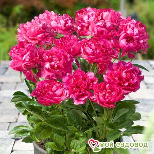 Букет Перфект — на пышном кустарнике до 60 см в высоту формируется множество ярких бутонов, окрашенных в малиново-розовый оттенок. Диаметр цветков составляет 18 см. Собраны они из многочисленных махровых лепестков: в серединке они похожи на язычки, по краям имеют закругленную форму. Посадка: после высадки в открытый грунт растение необходимо обильно полить. Общие рекомендации по уходу включают систематическое рыхление почвы, удаление сорняков, своевременный полив и обрезку ранних бутонов. Процедура проводится для того, чтобы продлить цветение. В нашем интернет-магазине вы сможете купить Пион Травянистый Так же возможно вас заинтересуют Пион Дюшес де Немур и Пион травянистый Корал Сансет .