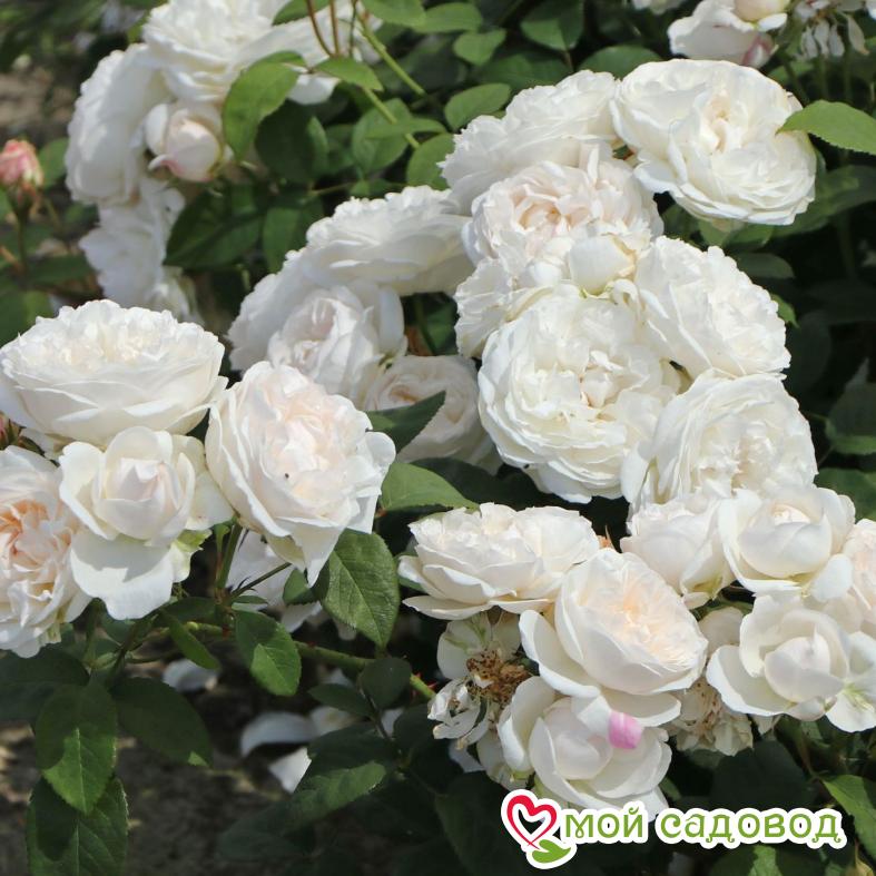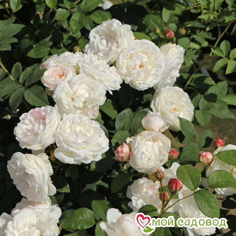 Роза Винчестер Кафедрал Этот сорт известен с 1988 года. Создан он селекционером из Британии (Дэвидом Чарльзом Остином). Это классический представитель английских роз. Винчестер Кафедрал – это результат почковой мутации сорта Мэри Роуз. От материнского растения он отличается только оттенком бутонов. Иногда цветочная культура встречается под названием AUScat и Winchester. Ботаническое описание Англичанка с первого взгляда производит хорошее впечатление. Это крепкий, раскидистый куст, склонный к разветвлению. В диаметре он достигает 1 м, а в высоту – 1 – 1,2 м. Мощные побеги практически бесшипные. Листва густая, насыщенно-зелёная, плотная и матовая. Красноватые и округлые бутоны формируются на макушках стеблей (группками по 2 − 3 шт. или по одному). Цветки белоснежные, густомахровые, чашевидной формы и средних размеров (в приделах 7 − 10 см). Иногда на фоне кипельно-белых соцветий выделяются 1 − 2 розовых бутона. В год посадки они могут иметь немного растрёпанный вид. Цветение обильное, практически непрерывное и длится до глубокой осени. Винчестер Кафедрал источает мягкий, сладковатый аромат с чётко выраженными миндальными, медовыми и цветочными нотками. Применение Сорт Винчестер Кафедрал подходит для одиночных посадок. Обильно цветущий куст можно посадить в большой горшок и поместить на террасе. При групповой посадке саженцы лучше всего выращивать на небольшом расстоянии друг от друга. В этом случае создаётся красивое белое облако с потрясающим ароматом. Агротехника Для розы Винчестер Кафедрал рекомендуется выбирать хорошо освещённое место. При этом важно, чтобы в разгар летнего дня декоративный многолетник не пребывал под прямыми УФ-лучами. Это чревато образованием ожогов на листве и цветочных лепестках. Комфортнее всего выращенной в питомнике рассаде будет в ажурной полутени. Также надо помнить о том, что растение не выносит холодных сквозняков и сырости. Данный сорт высаживают на участок весной или осенью. Он предпочитает рыхлую, насыщенную полезными веществами землю с низким уровнем pH. При выращивании саженцев на суглинках в них заранее вносят торф и перегной. В почву с высокой кислотностью добавляют древесную золу. Лунку выкапывают шириной и глубиной в пределах 60 см. На дно укладывают слой дренажа (к примеру, из керамзита или битого кирпича). Его толщина должна соответствовать 10 см. Далее в лунку вносят органику, а следом – садовую почву. При погружении розы в ямку корневая шейка должна быть на 3 см ниже уровня грунта. Уход за изображённым на фото сортом включает обильный полив. В течение всего вегетационного периода процедуру проводят 2 раза в неделю. Воду используют мягкую и прогретую на солнце. В конце лета поливы сокращают, а с наступлением осени и вовсе прекращают. Через день после увлажнения почвы прикорневую зону рыхлят, одновременно удаляя сорняки. Дополнительно можно замульчировать приствольные круги (например, опилками или скошенной травой). Особое внимание необходимо уделить подкормкам. Они требуются розе Винчестер Кафедрал со второго года жизни. Весной вносят органику, а летом, когда начнут завязываться бутоны, используют минеральные составы. Во время распускания бутонов британскую красавицу можно подкормить коровяком. Преимущества розы Винчестер Кафедрал К главным достоинствам рассматриваемого сорта относят