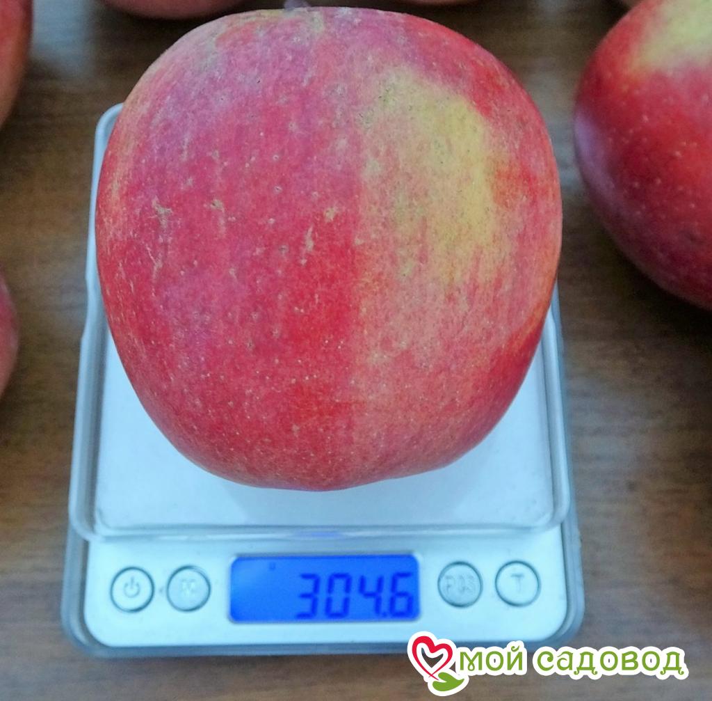 Плоды среднего и крупного размера, весом около 200-250 г, имеют правильную шарообразную форму. Они очень красивые, насыщенного красно-рубинового цвета с выраженными полосками по всей поверхности. Обладают сочной, нежной, хрустящей, мелкозернистой мякотью, очень вкусной, с преобладающей сладостью и слабой кислинкой. После съема плоды хранятся в подвалах до марта, в холодильнике и специальном хранилище – до июня. При длительном хранении не утрачивают свое высокое качество, привлекательный вид и отличный вкус. Хорошо транспортируются.
